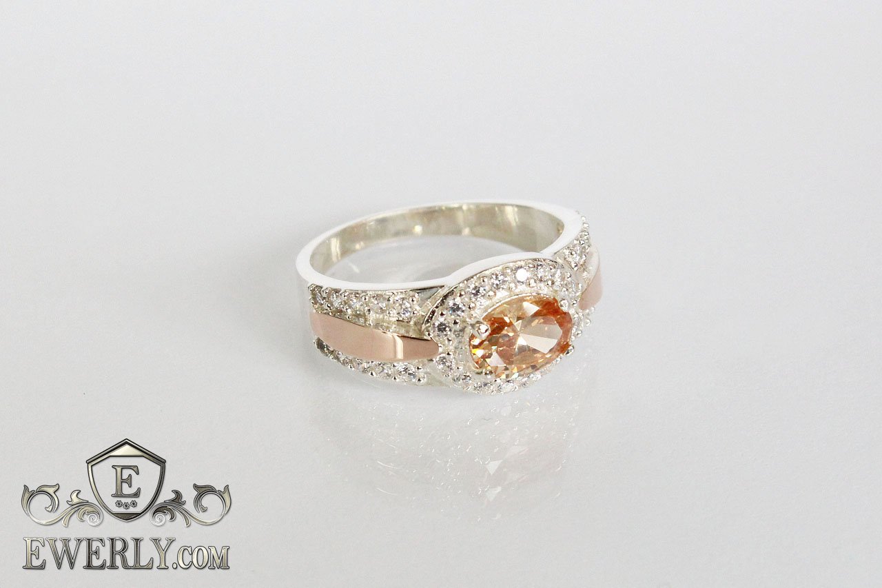 Кольцо из серебра с камнем (фианит цвета шампань)