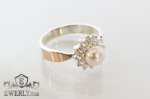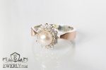 Серебряное кольцо с золотом - звезда с имитацией белой жемчужины (фианит)