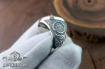 Боковые части перстня украшены знаком АллатРа — древним символом духовной силы, единства и гармонии. Он несёт в себе защитный и энергетический посыл, усиливая общий смысл украшения.