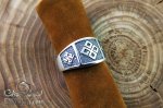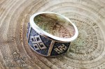 Авторская мужская серебряная печатка без камней со славянскими символами. На данном кольце изображены символы "Одолень-трава" и "Реза Даждьбога".