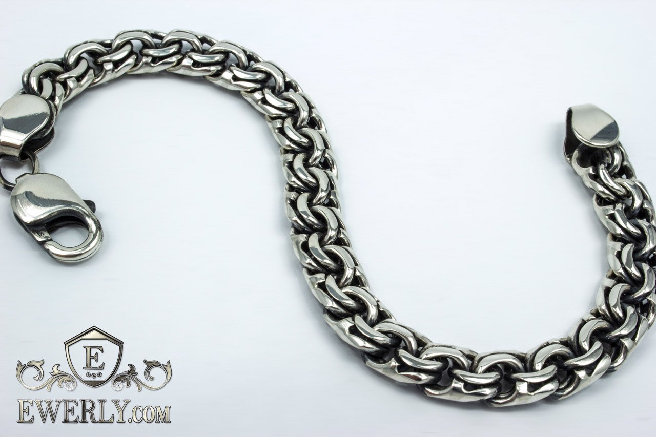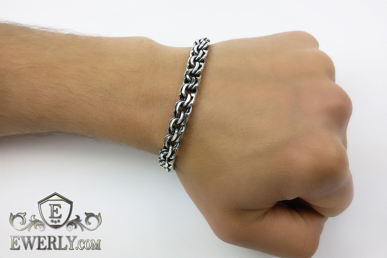 Чоловічий срібний браслет Бісмарк - плетіння з чорнінням