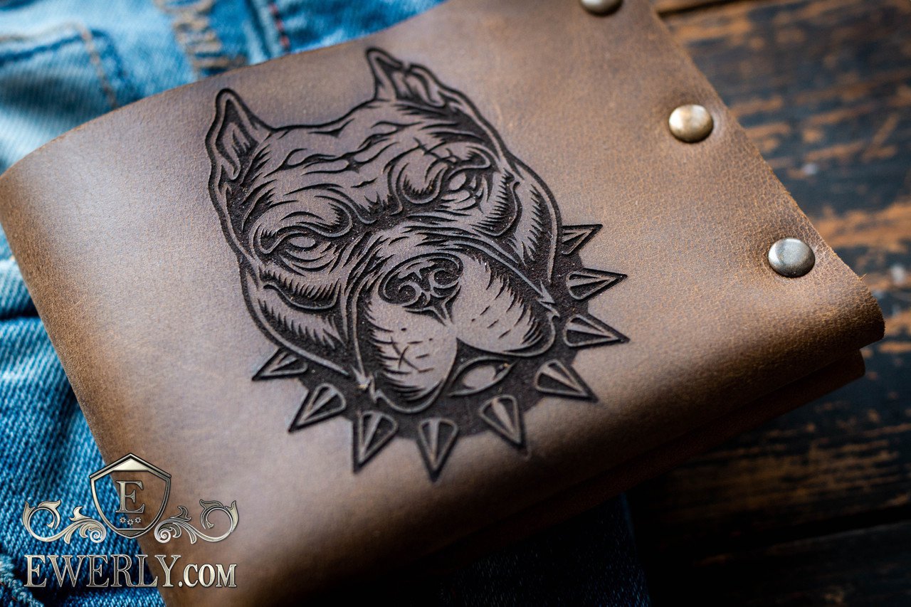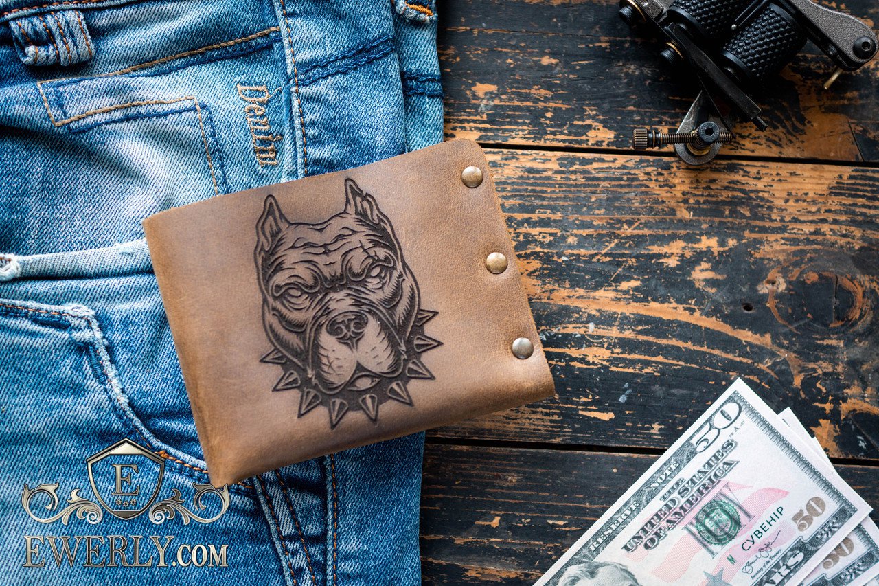 Чоловічий гаманець з пітбулем з натуральної шкіри