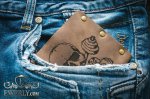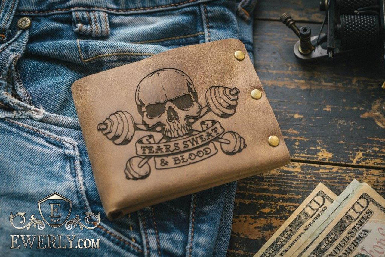 Шкіряний гаманець для чоловіка із зображенням черепа і штанг