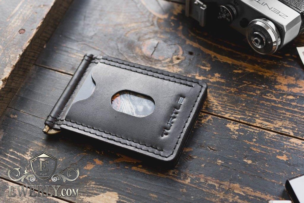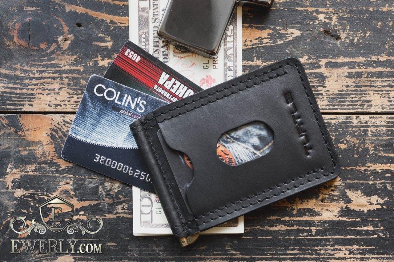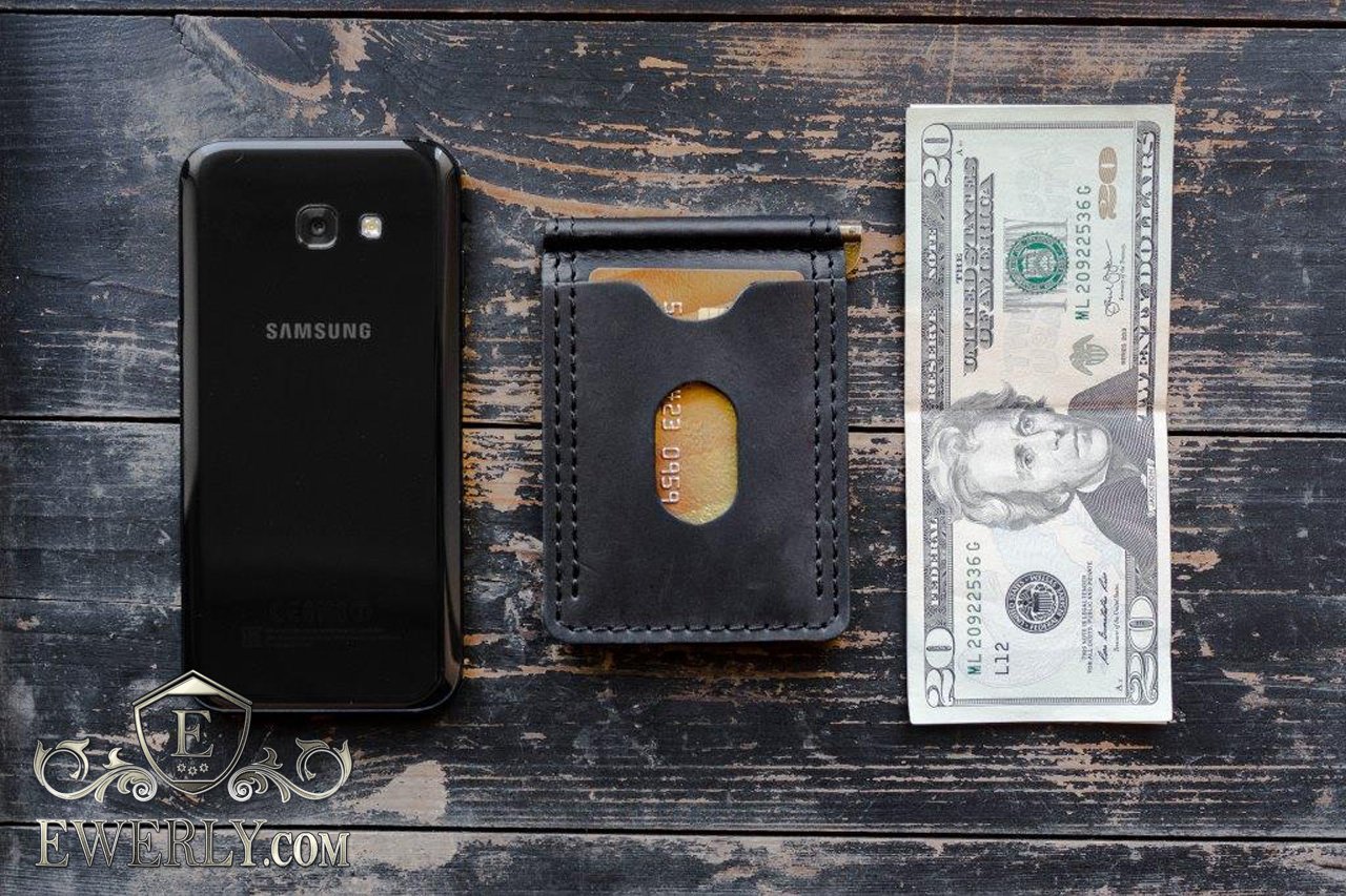 Зажим для грошей купюр шкіряний чорний 11032SO