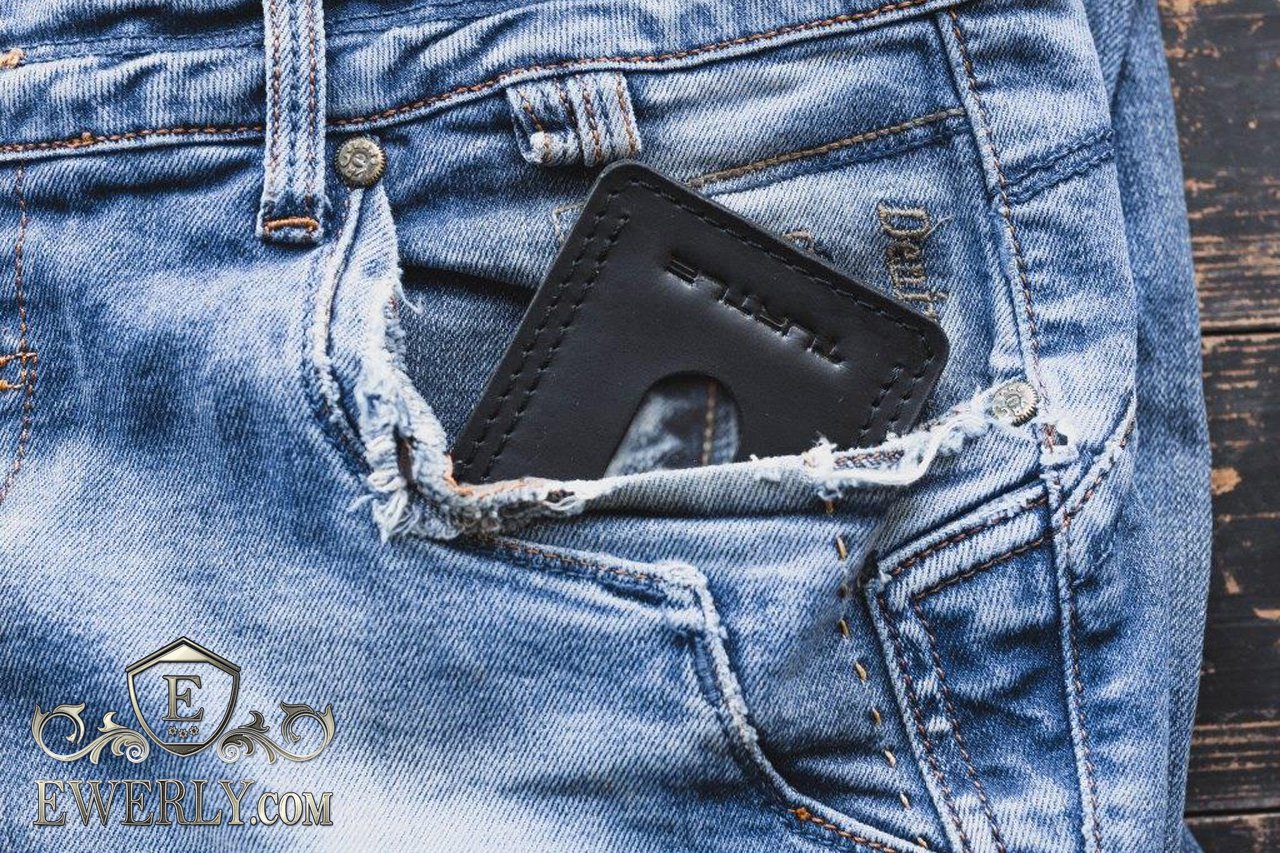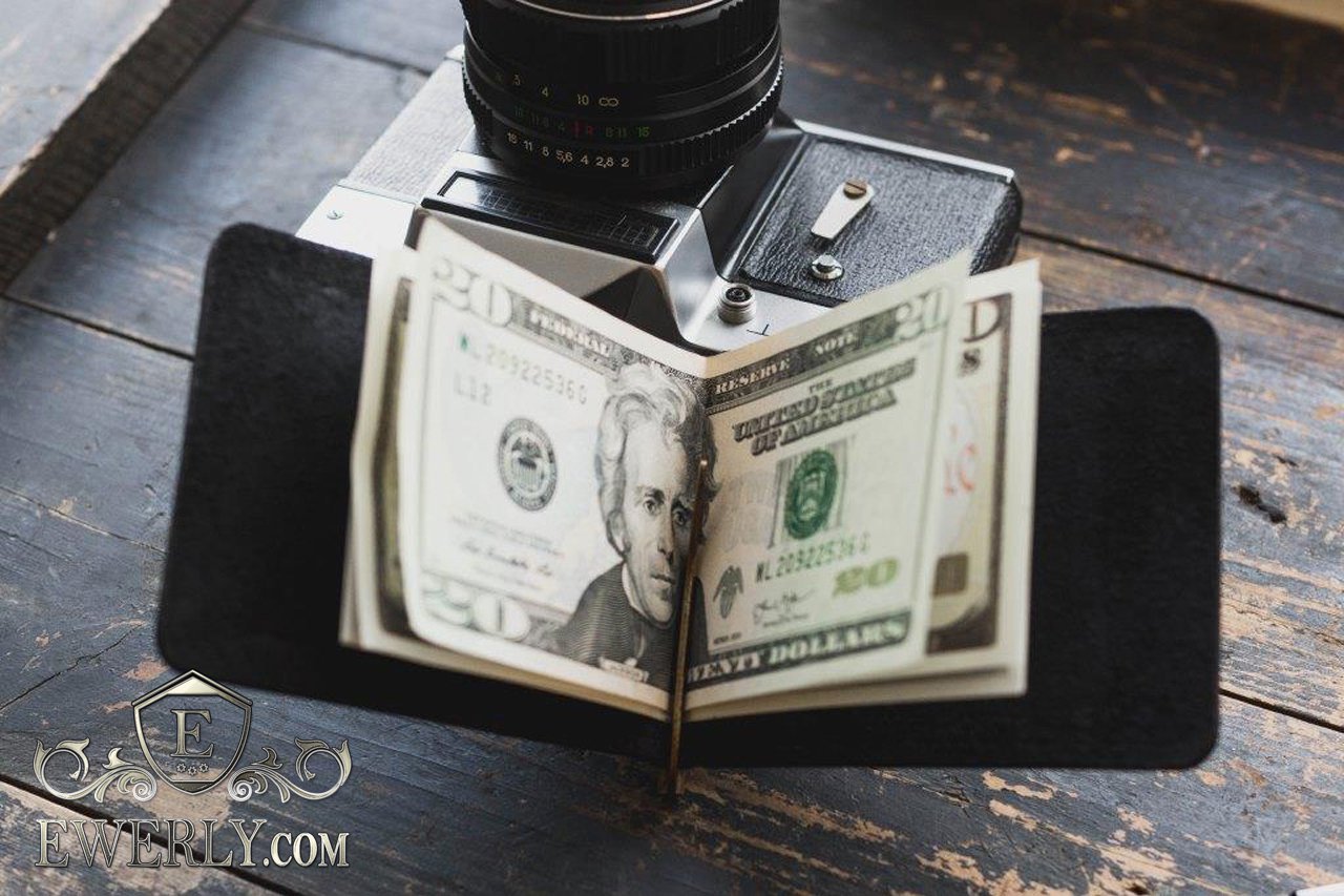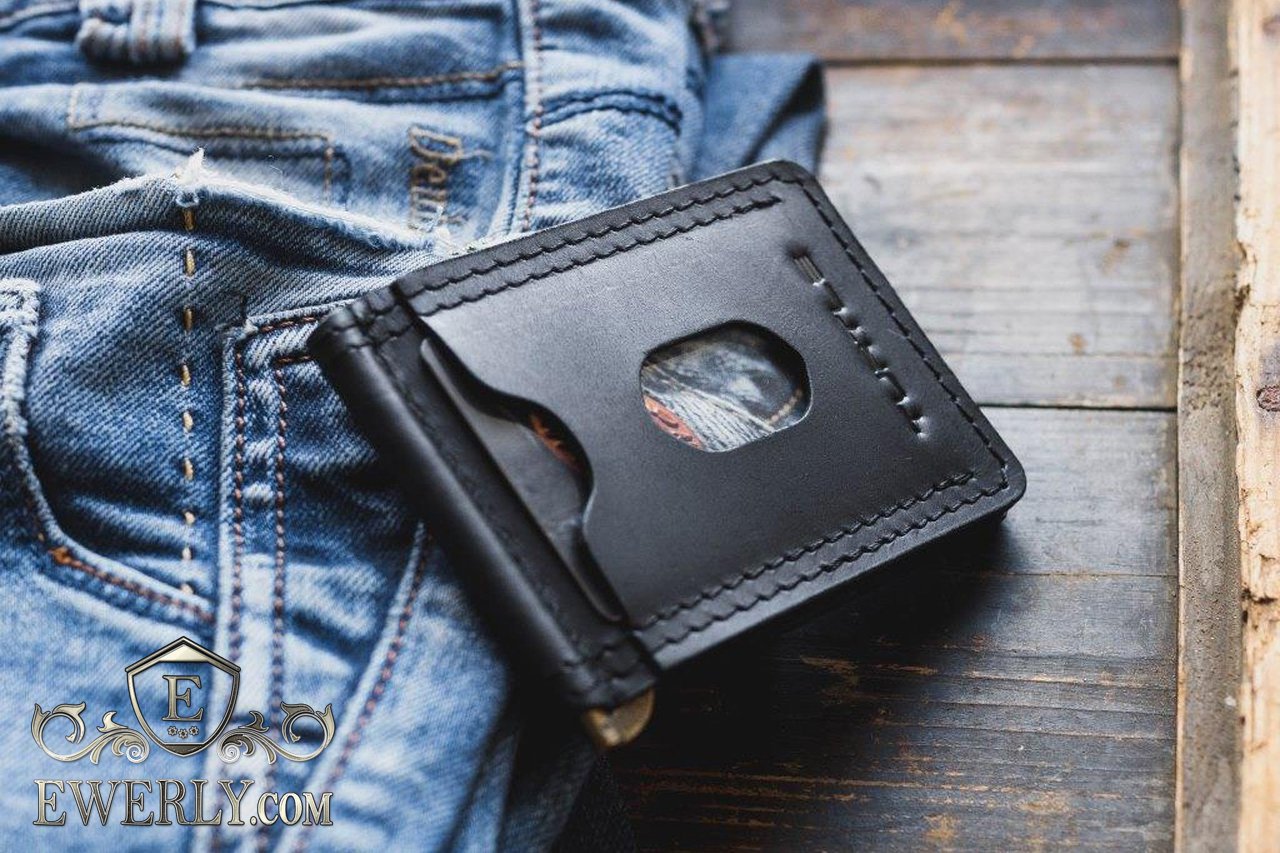 Зажим для грошей купюр шкіряний чорний 11032SO