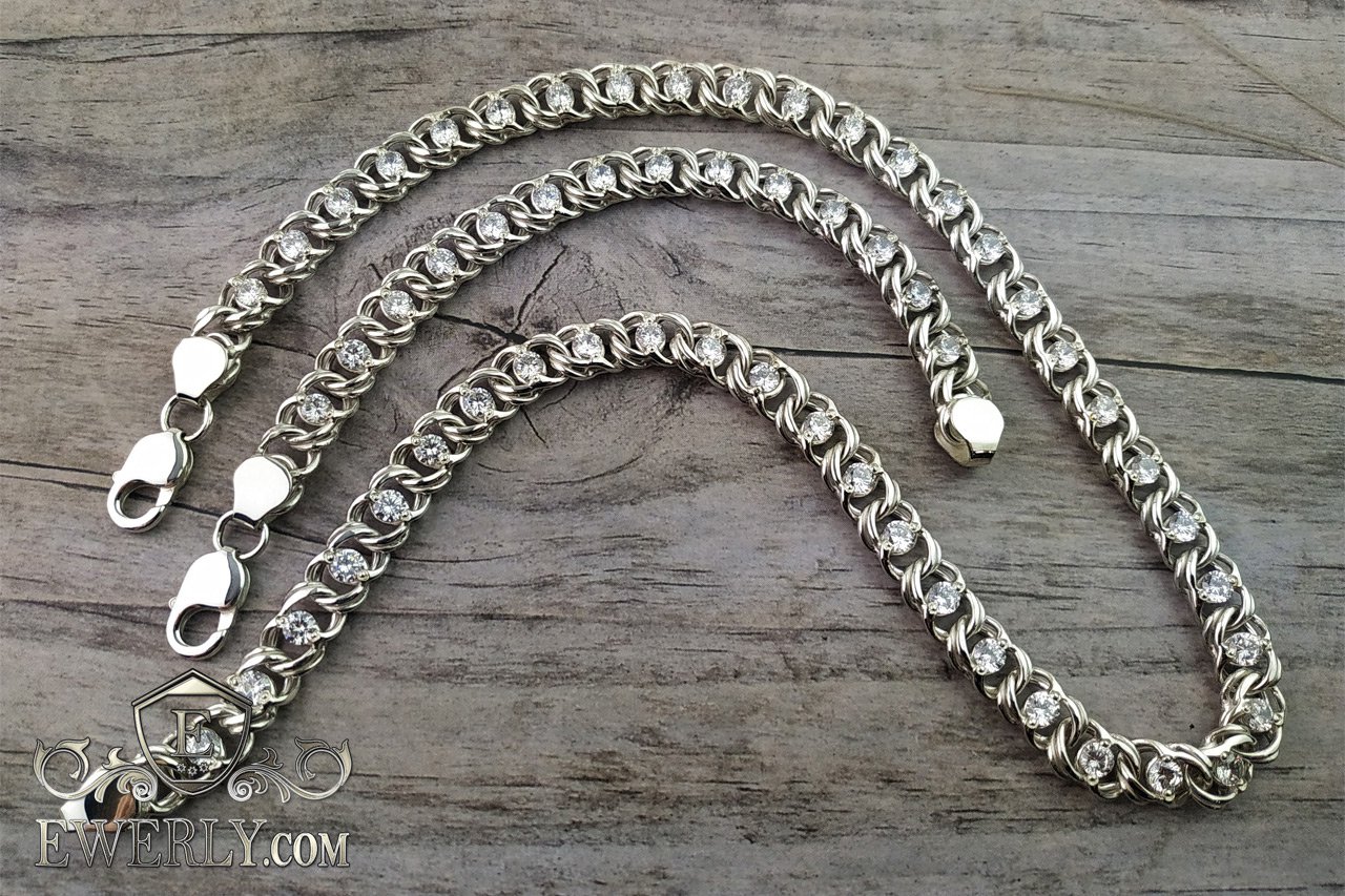 Арабський Бісмарк - набір: ланцюжок і браслет зі срібла з білими каменями