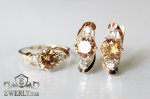 Сережки і кільце зі срібла з золотом і блакитним камінням кольору шампань
