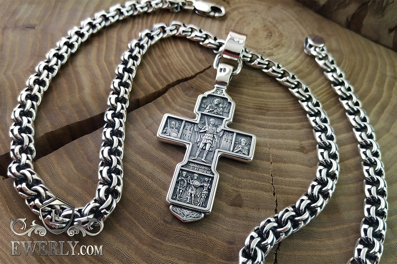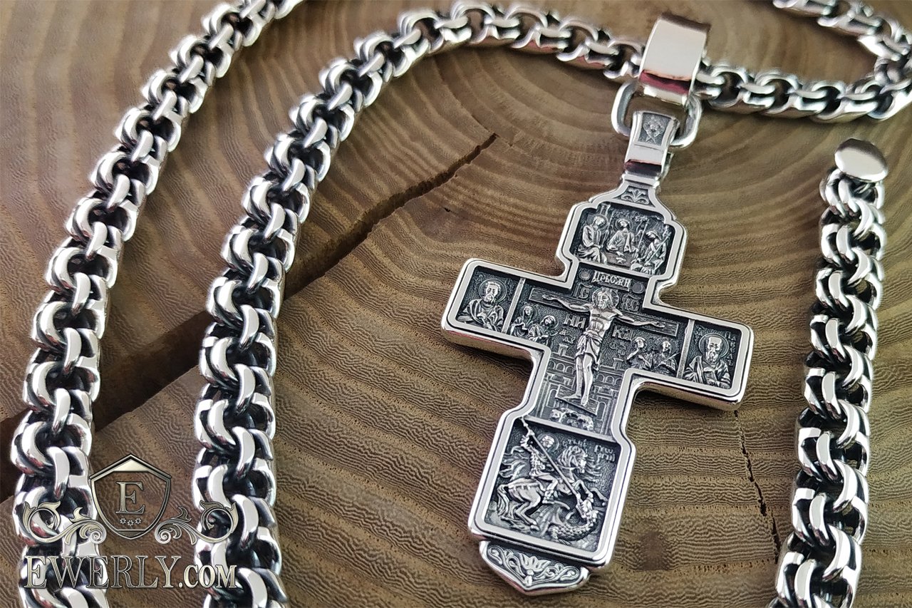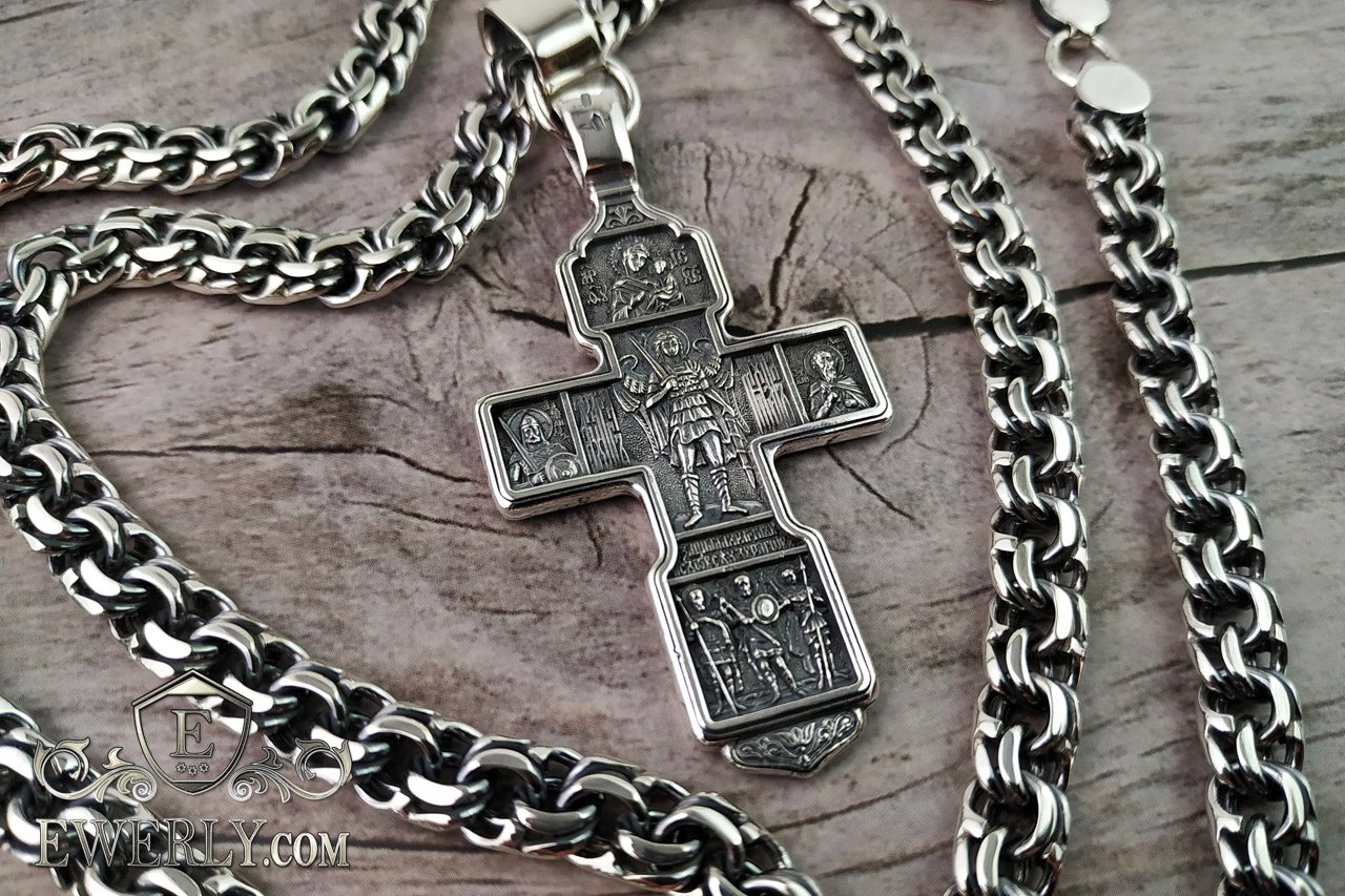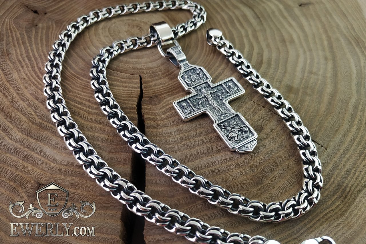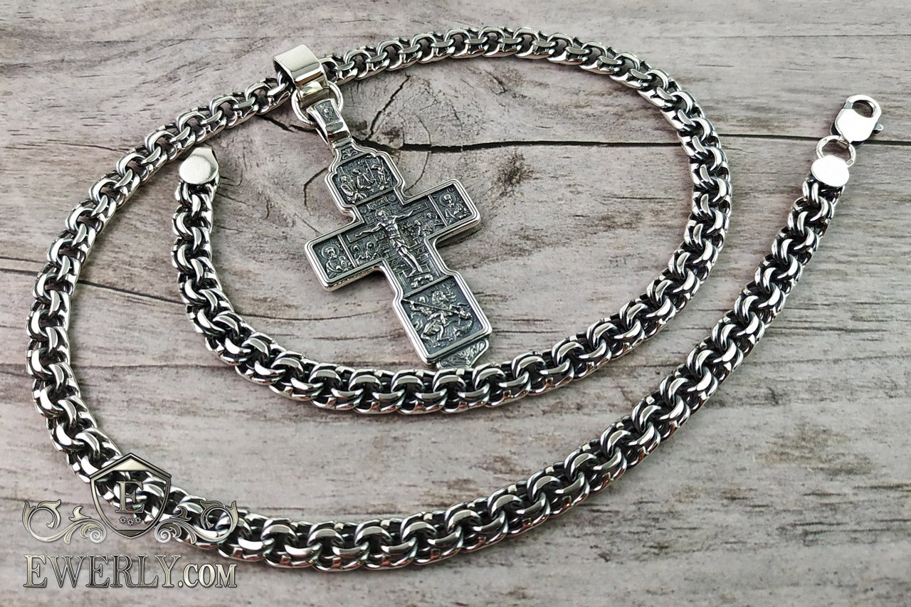Чоловічий ланцюжок Бісмарк зі срібла з великим православним хрестом