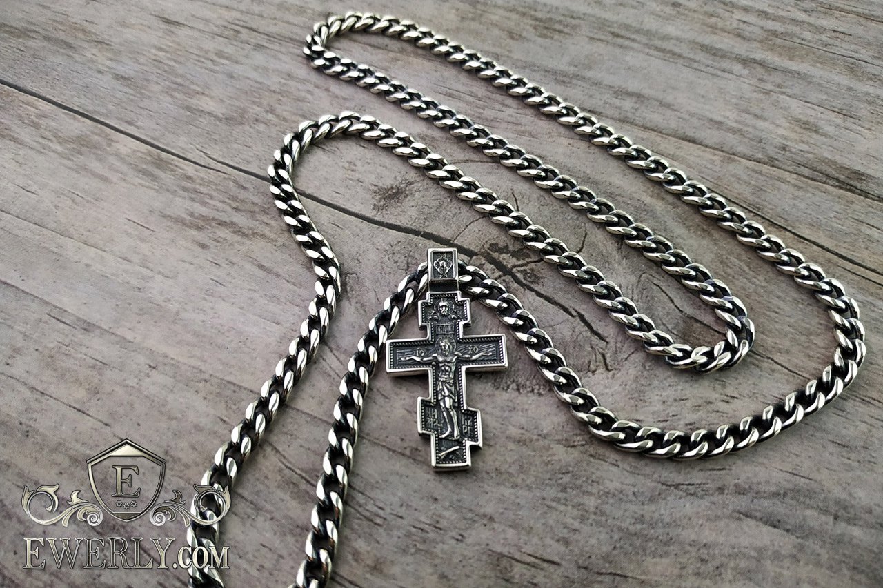 Чоловічий срібний панцирний ланцюжок з православним хрестиком