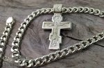 Чоловічий срібний панцирний ланцюг з великим православним хрестом