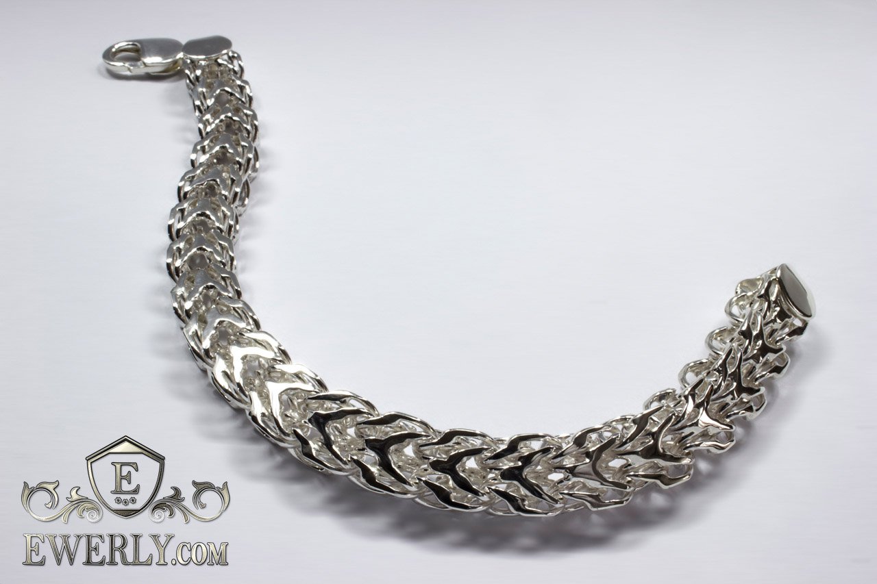 Повновісний срібний браслет на руку. Унікальне плетення, розроблене нашими майстрами, і на цей час Ви ніде більше такого не знайдете. Купити або замовити вироби з цього плетіння можна тільки у нас.