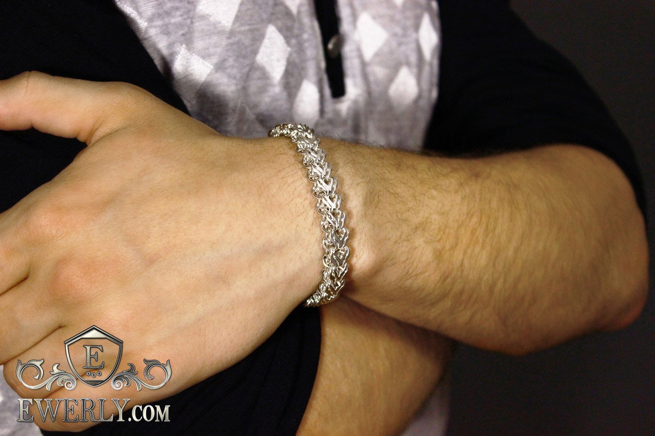 Срібний браслет з унікального плетіння «Алігатор» для чоловіків