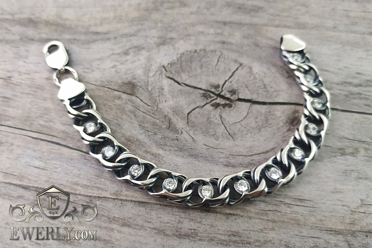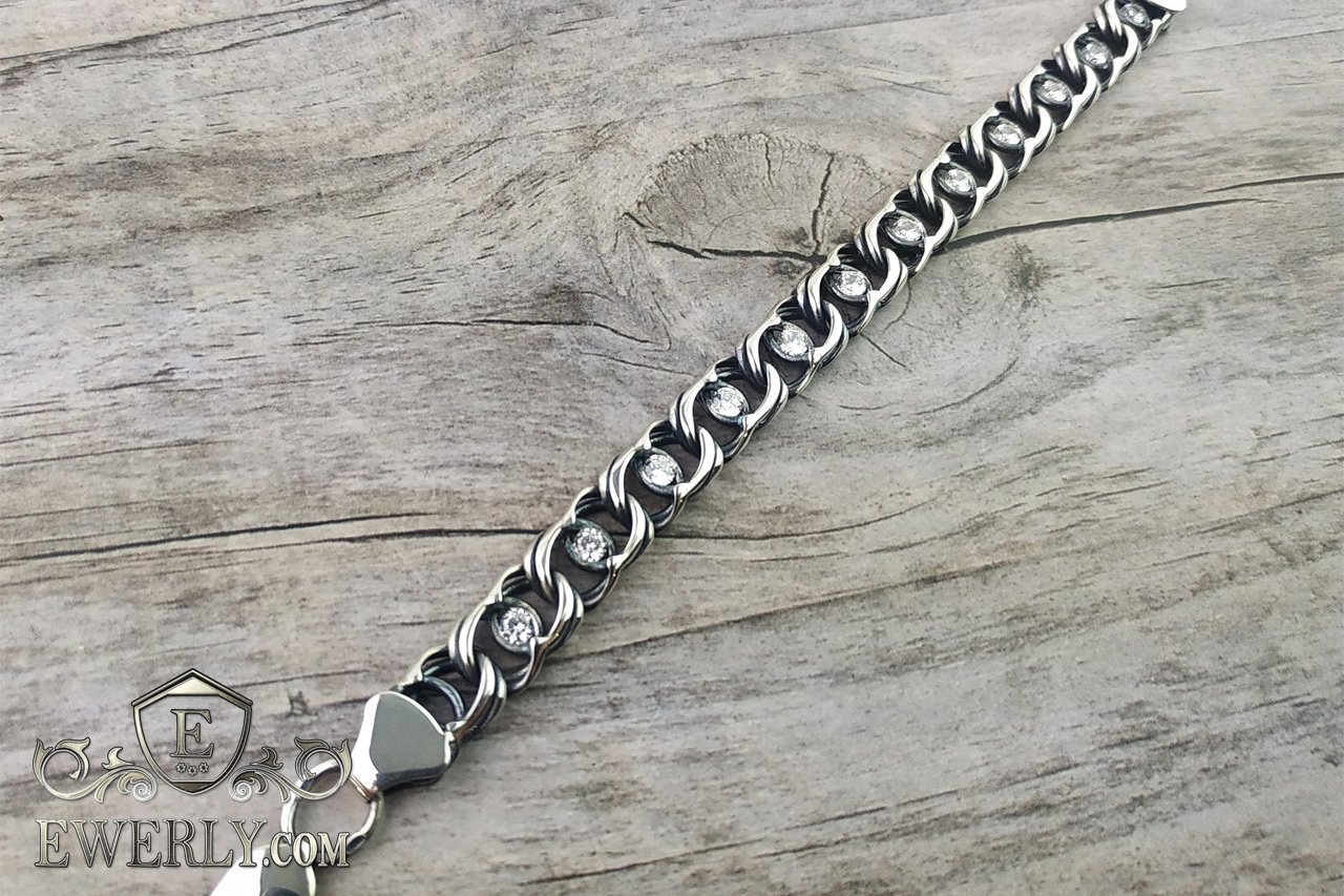 Арабський Бісмарк з фіанитами - браслет зі срібла з каменями