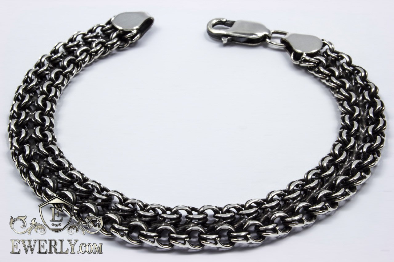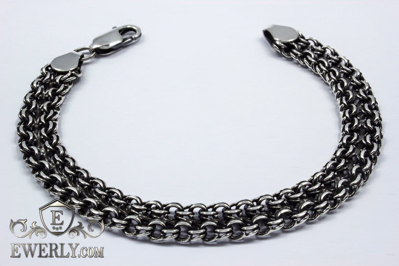 Широкий срібний браслет Подвійний Бісмарк з чорнінням