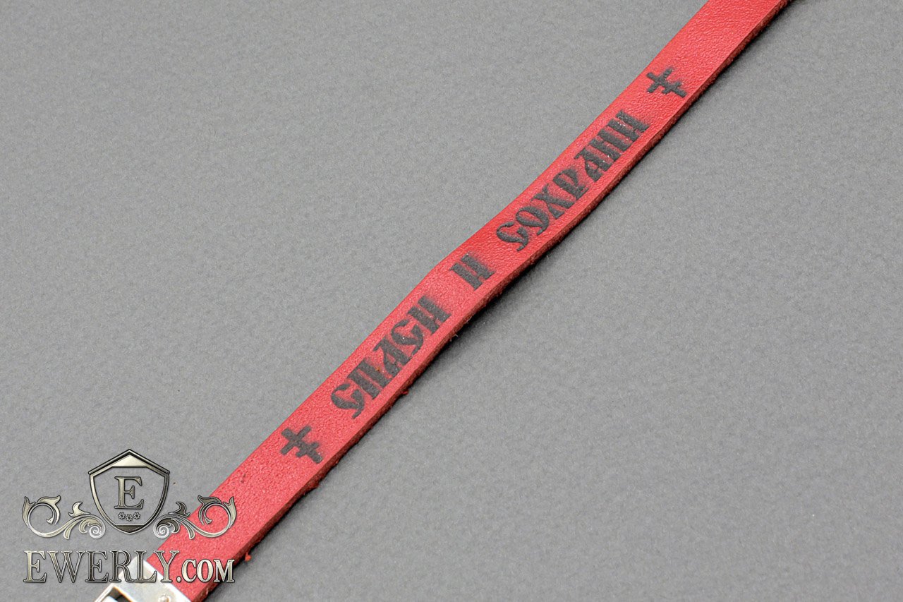 Православний браслет з червоної шкіри з срібним замком