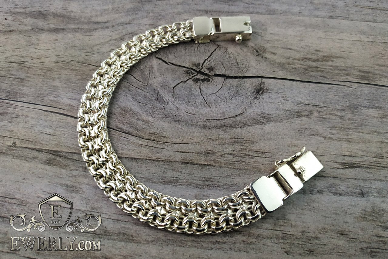 Плетіння Подвійний Бісмарк - чоловічий браслет зі срібла