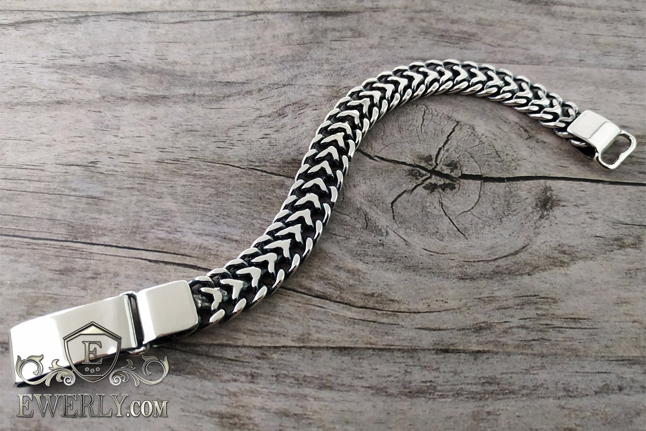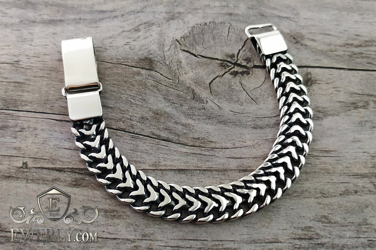 Чоловічий срібний браслет з подвійного панцерного плетіння