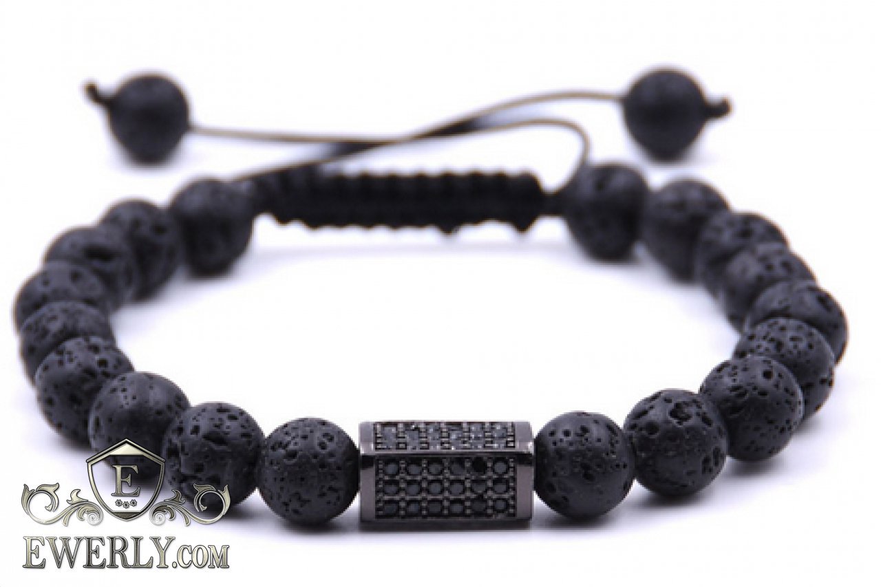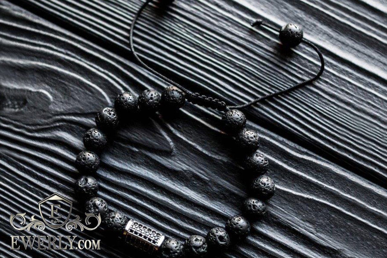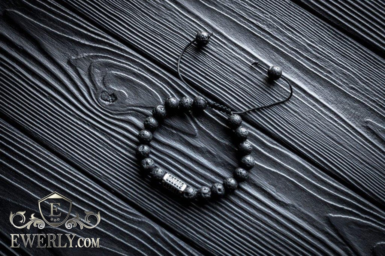 Чоловічий кам'яний браслет з натуральної вулканічної лави 123030WZ
