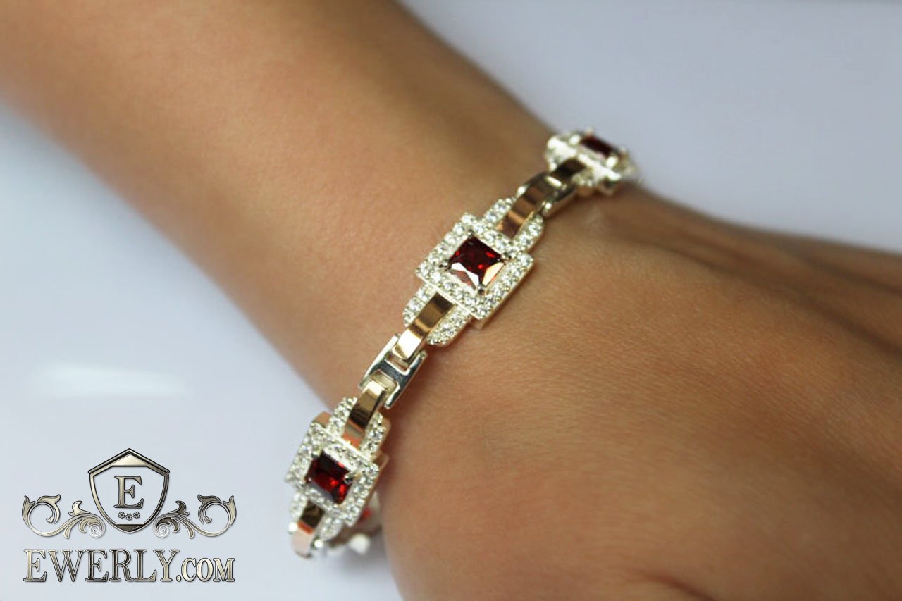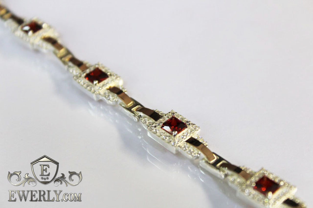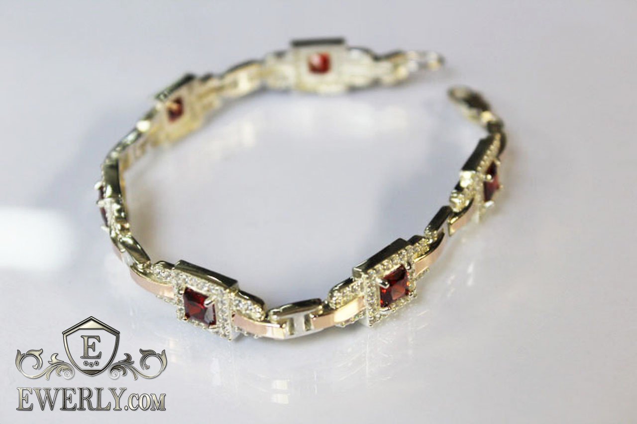 Жіночий браслет зі срібла з золотом і червоними каменями