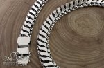 Повновісний ланцюжок. На фото зображено масивний срібний ланцюг Подвійний бісмарк із накладками. Зверніть увагу, що можна замовити менший ланцюжок із срібла з накладками іншої форми, а також ланцюги з інших плетен.