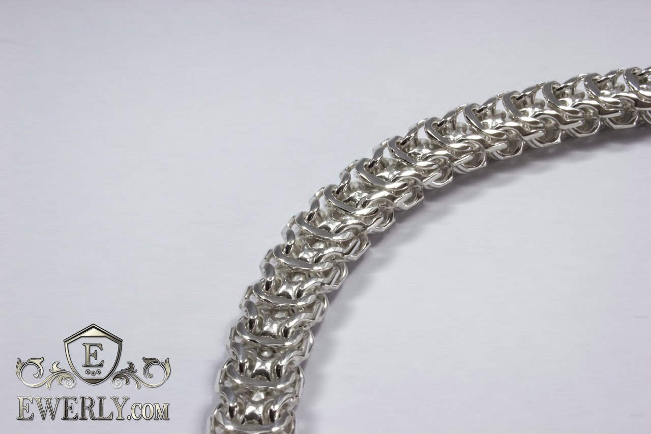 Повновісний срібний браслет на руку. Дане плетіння досить трудомістке у виконанні, і більшість ювелірів не володіють достатнім рівнем навичок у виготовленні, щоб досягти високої якості прикрас, не кажучи вже про те, щоб просто виготовити. На цей час якість наших робіт з цього плетіння значно перевершує більшості інших виробників.