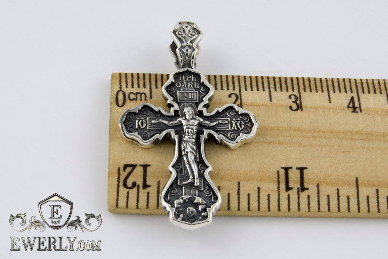 Православний хрест зі срібла з чорнінням. Розп'яття Христа.Висота: 5.5 мм