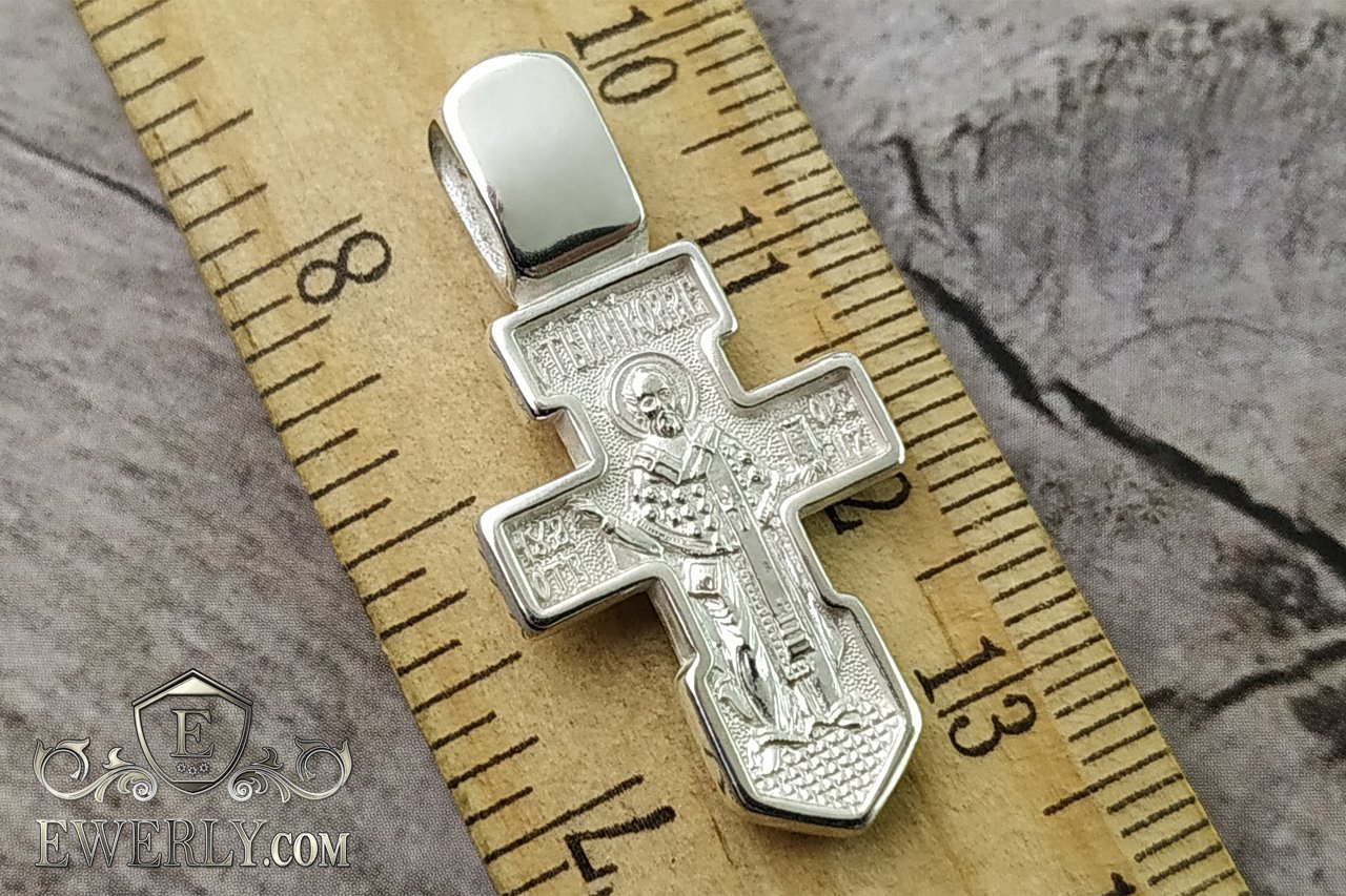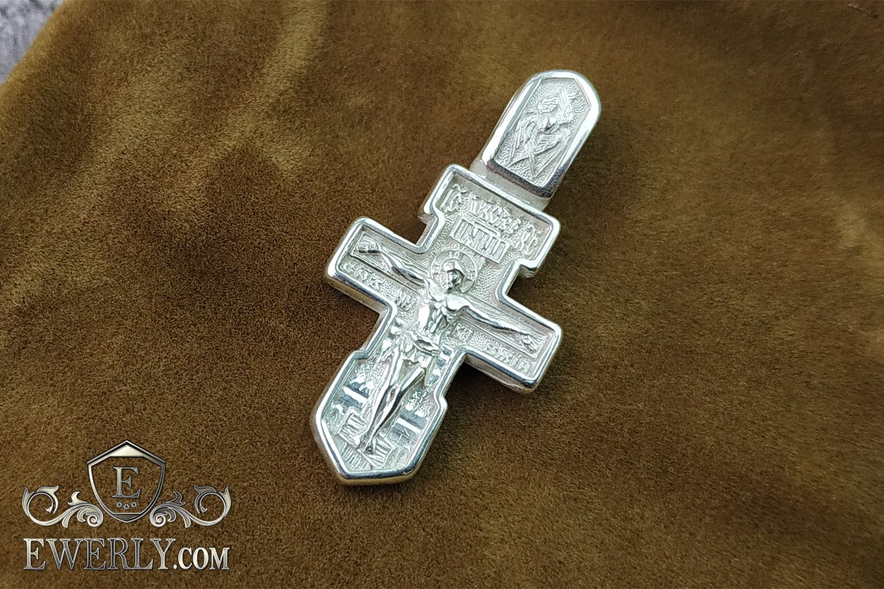 Натільний чоловічий православний хрест зі срібла. Розп'яття Христа. Висота: 6 мм