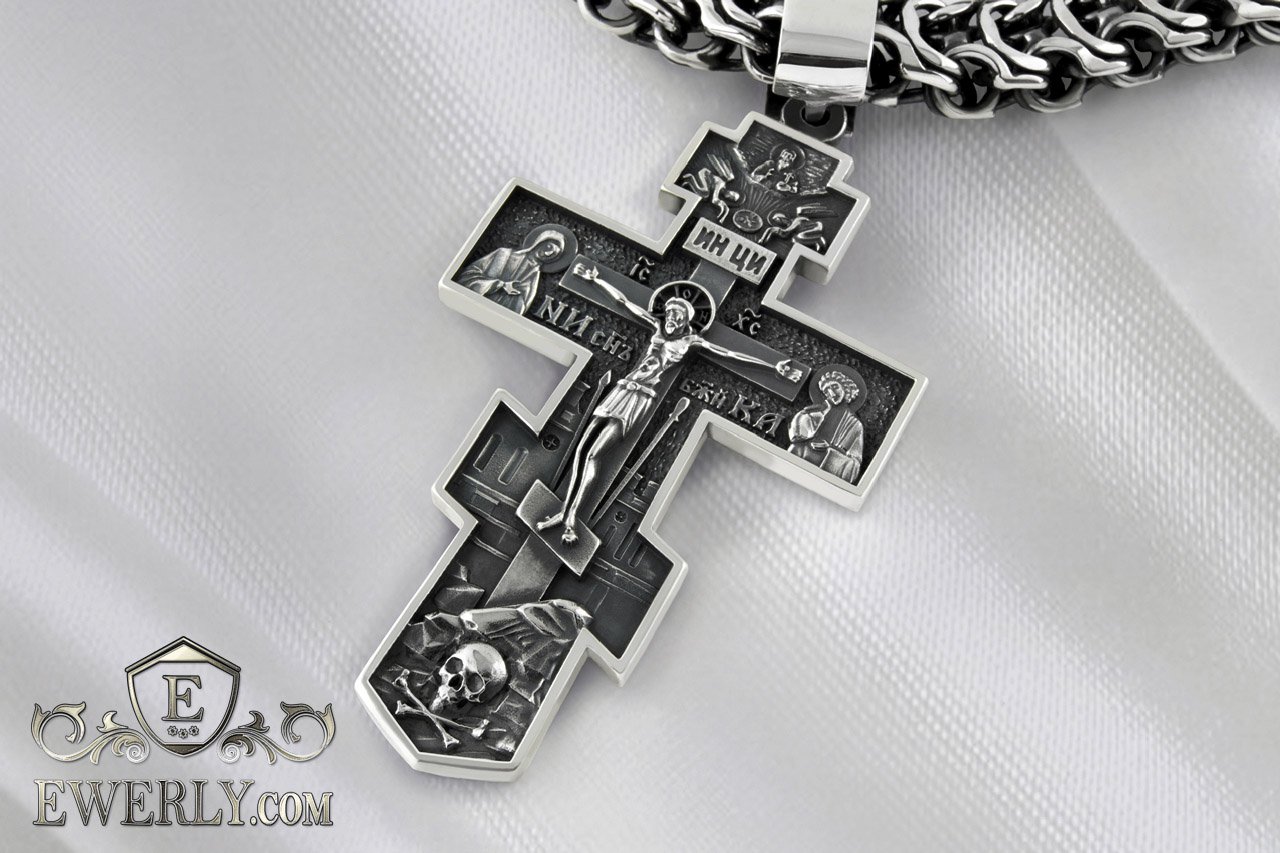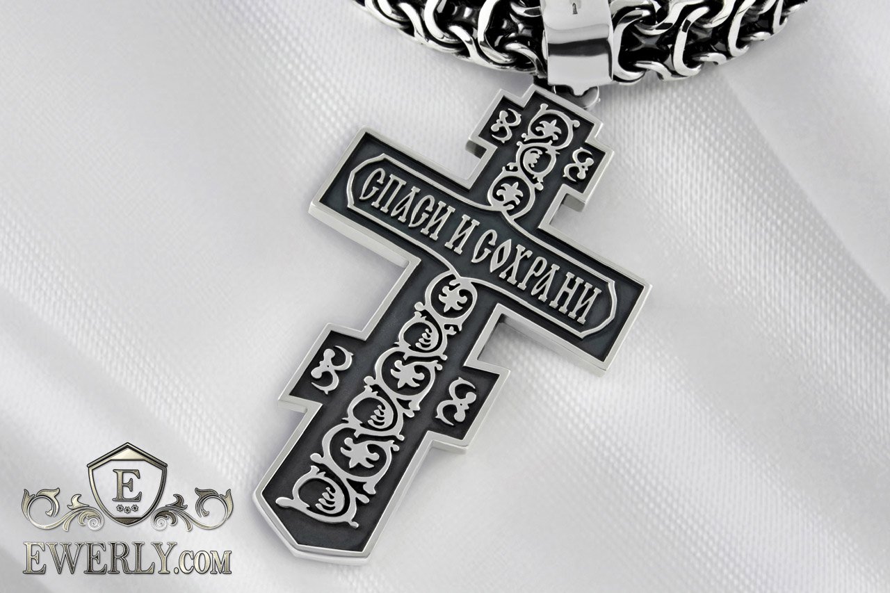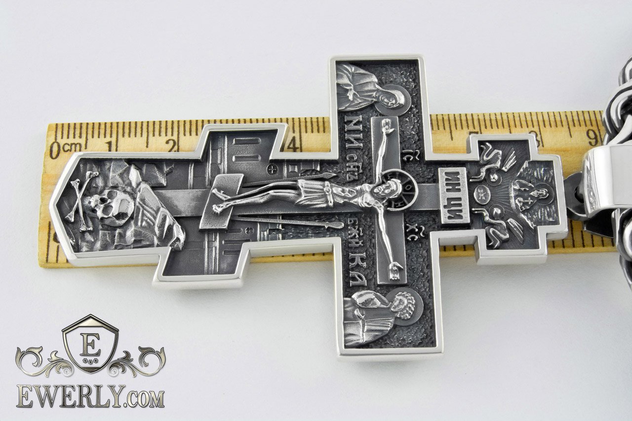 Відео в HD якості - Великий чоловічий срібний хрест з чорнінням