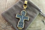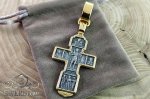Зображено на хресті: Розп'яття Христове з майбутніми. Свята Трійця. Архангел Михаїл. Святі Воїни. Тихвинська ікона Божої Матері. Великий православний хрест із чорнінням та позолотою. Висота: 8 мм