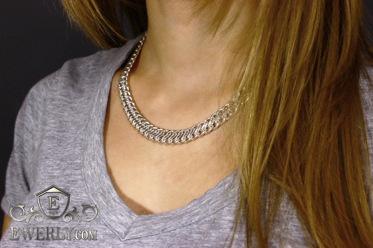 Повновісний срібний ланцюжок на шию. Дане плетіння досить трудомістке у виконанні, і більшість ювелірів не володіють достатнім рівнем навичок у виготовленні, щоб досягти високої якості прикрас, не кажучи вже про те, щоб просто виготовити. На цей час якість наших робіт з цього плетіння значно перевершує більшості інших виробників.
