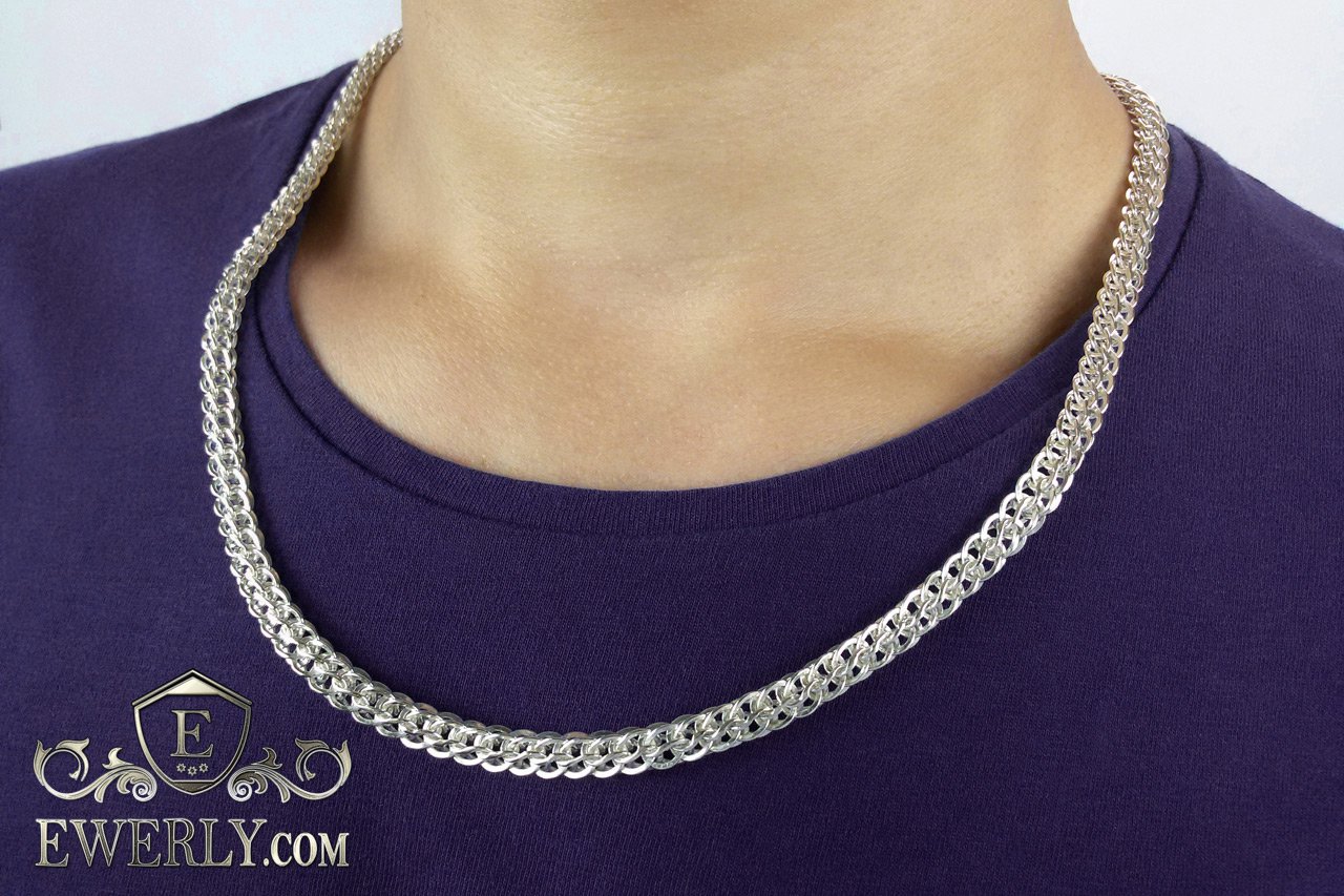 Повновісний срібний ланцюжок на шию. Унікальне плетення, розроблене нашими майстрами, і на цей час Ви ніде більше такого не знайдете. Купити або замовити вироби з цього плетіння можна тільки у нас.