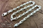 Плетіння даного ланцюжка створено на основі стандартного якірного плетіння зі срібла з гранями, де на кожній другій сполучній ланці додано ще одну обтічну додаткову ланку.
