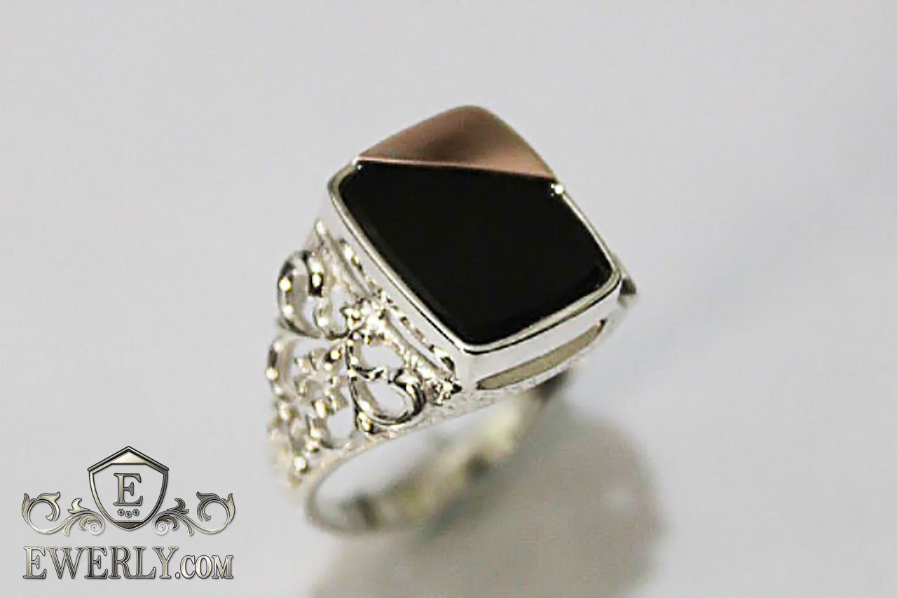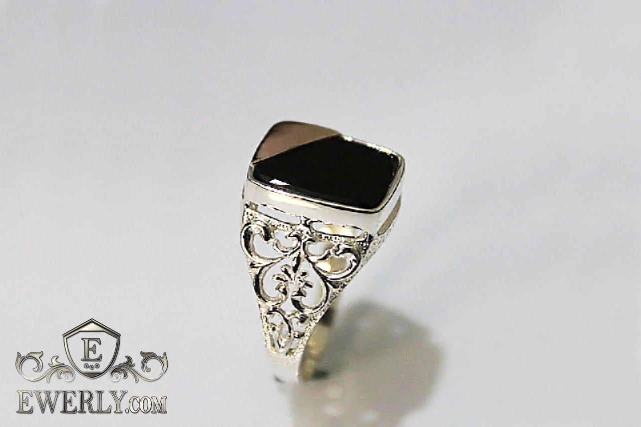 Чоловічий срібний перстень з чорним каменем - Оніксом