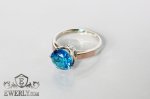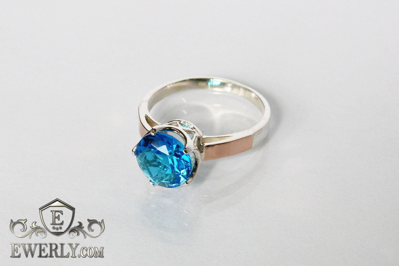 Срібне жіноче кільце з золотими вставками і фіанитом (колір блакитний)
