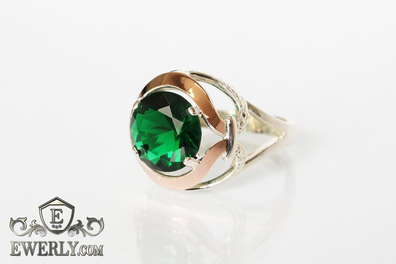 Каблучка зі срібла з зеленим каменем і золотом для жінок
