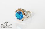 Кільце зі срібла з золотом і блакитним каменем для жінки