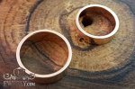 На фото представлені дві золоті обручки, чоловіче і жіноче. Виготовлені дані каблучки із золота 585 проби жовтого кольору, виконані у класичному стилі – гладкі.